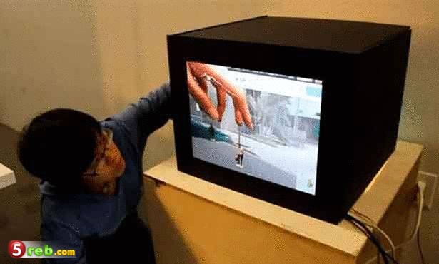كانت جاين فيديشاروين الطالبة بكلية الفنون التصميمية بولاية كاليفورنيا قد صممت نموذج تليفزيون يحول اليد الحقيقية إلى يد افتراضية عندما يقوم المستخدم بوضعها وراء التليفزيون.